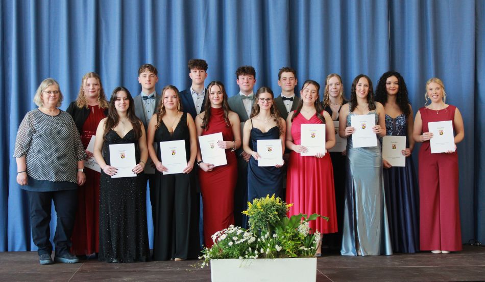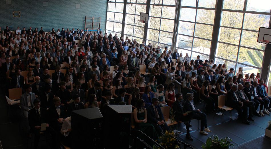 Nach den Glückwünschen des Landkreises Cochem-Zell durch den Ersten Kreisbeigeordneten Hans-Joachim Mons erfolgte die feierliche Zeugnisübergabe durch Schulleiterin Michaela Koch, Oberstufenleiter Thorsten Nelius und die jeweiligen Stammkursleitungen. Stolz nahmen die Abiturientinnen und Abiturienten ihr Zeugnis der Allgemeinen Hochschulreife unter dem Applaus ihrer Familien und Lehrer entgegen.