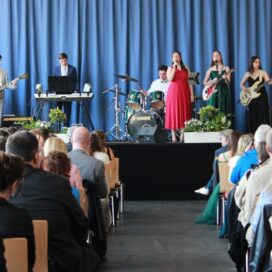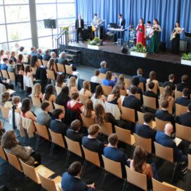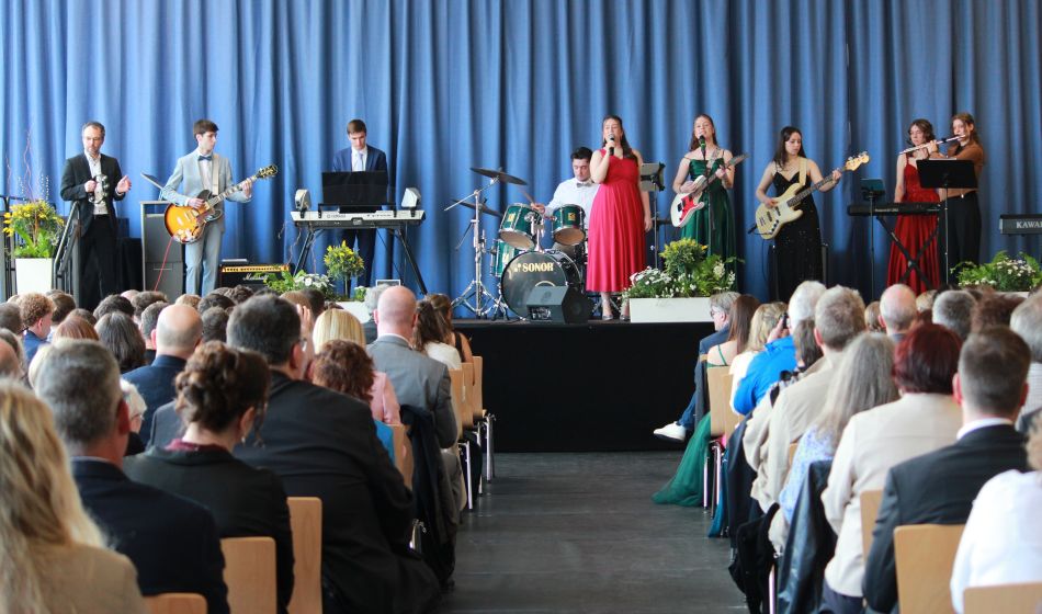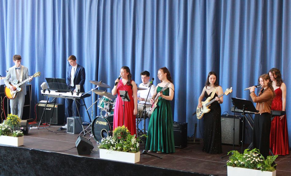 Den musikalischen Einstieg gestaltete eine eigens aus den Abiturienten des Musikkurses geformte Band mit „Don’t Look Back in Anger“ von Oasis.
