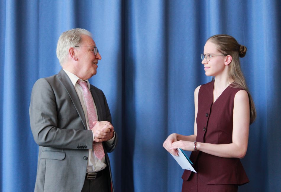 Den Preis des Schulträgers für das beste Abitur erhielt Hanna Winkler vom Ersten Kreisbeigeordneten Herrn Hans-Joachim Mons, der Frau Landrätin Anke Beilstein vertrat.