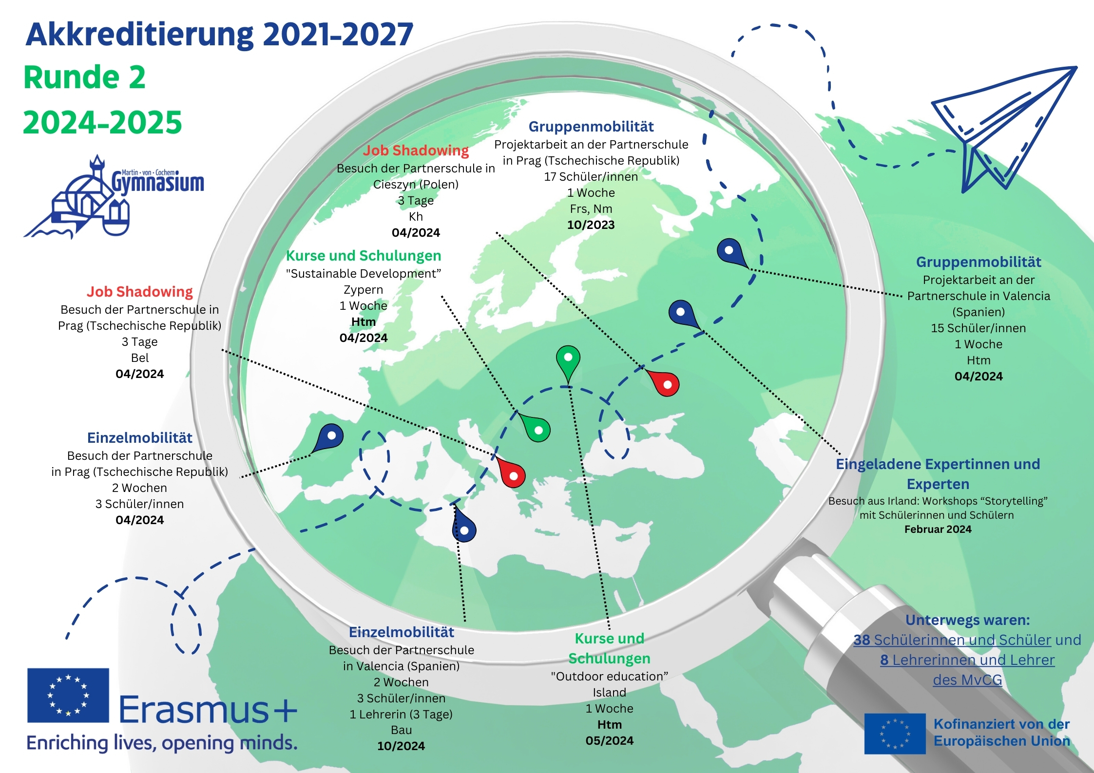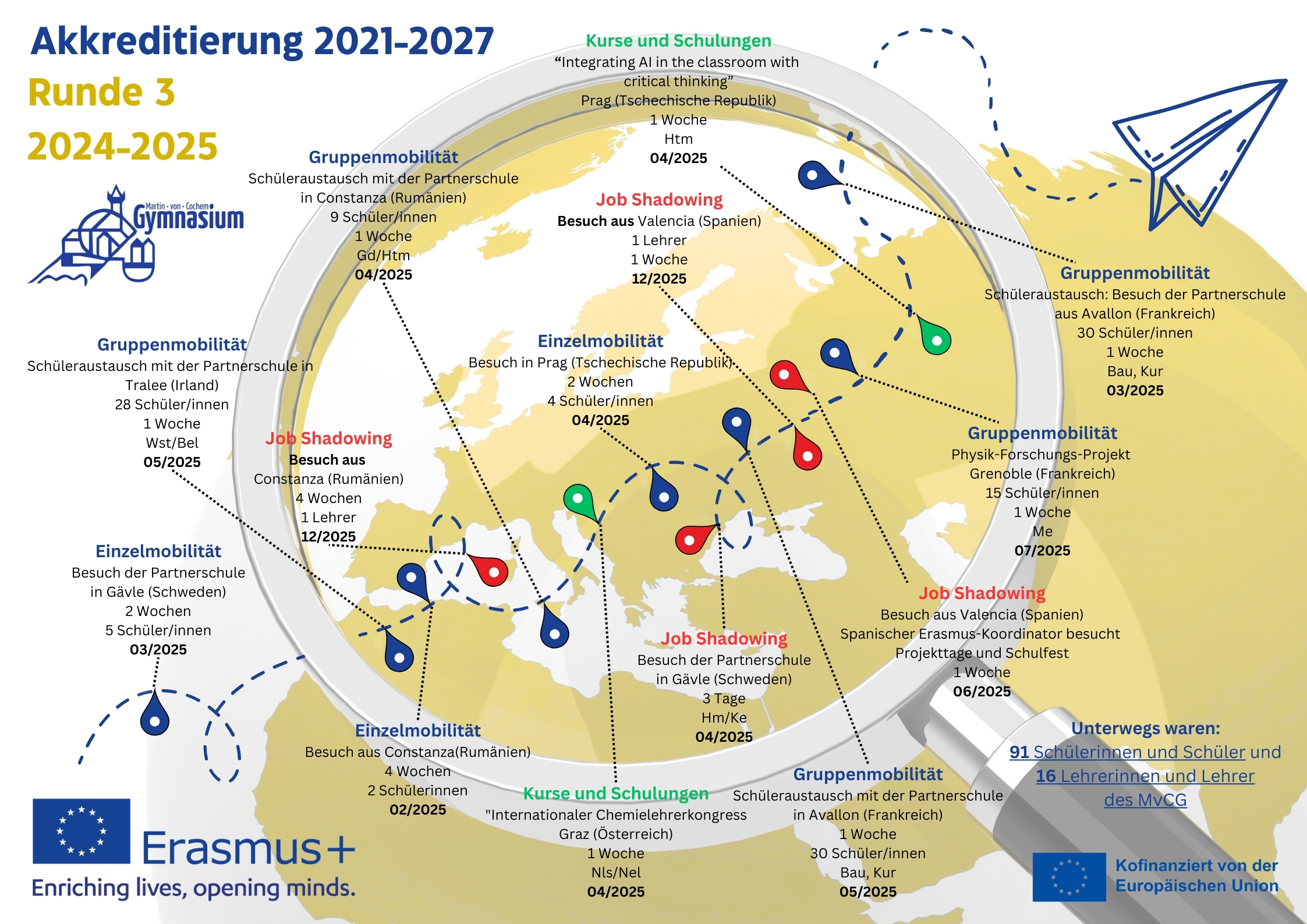 Das Martin-von Cochem-Gymnasium pflegt durch das Erasmus-Programm geförderte Schüleraustausche mit vielen verschiedenen Ländern Europas.